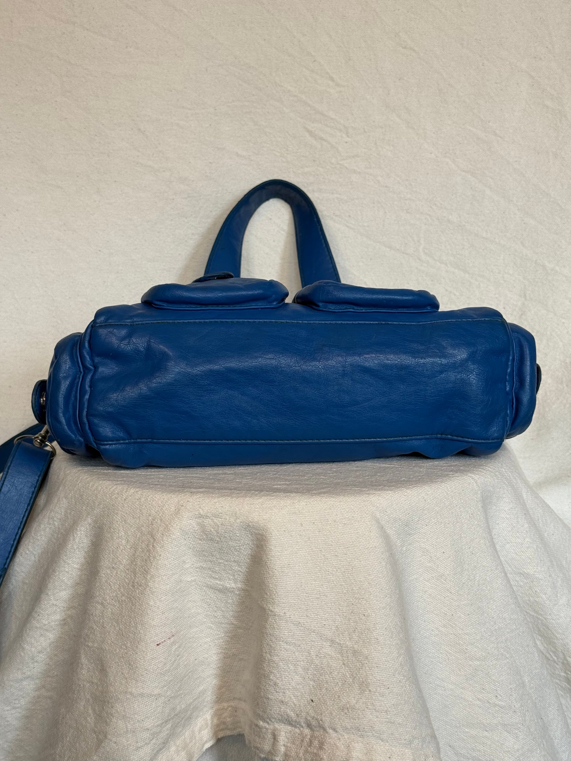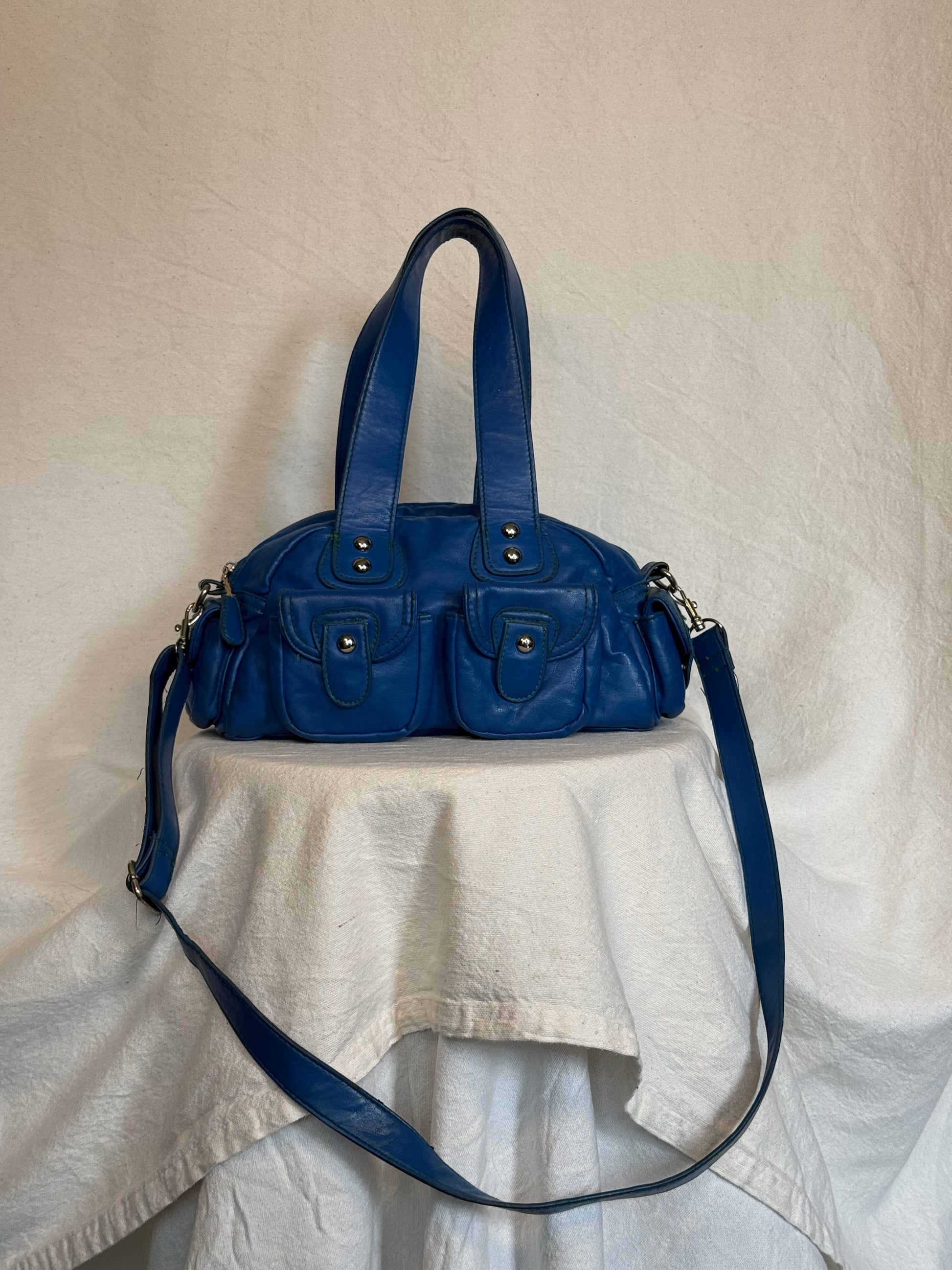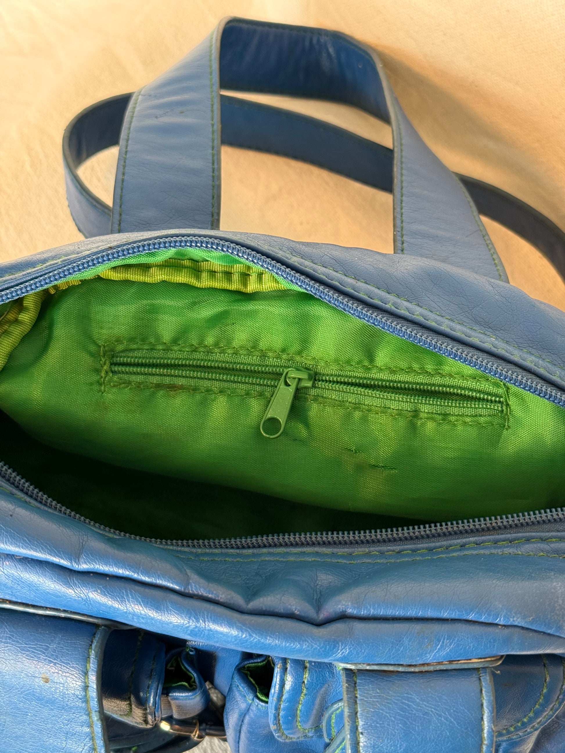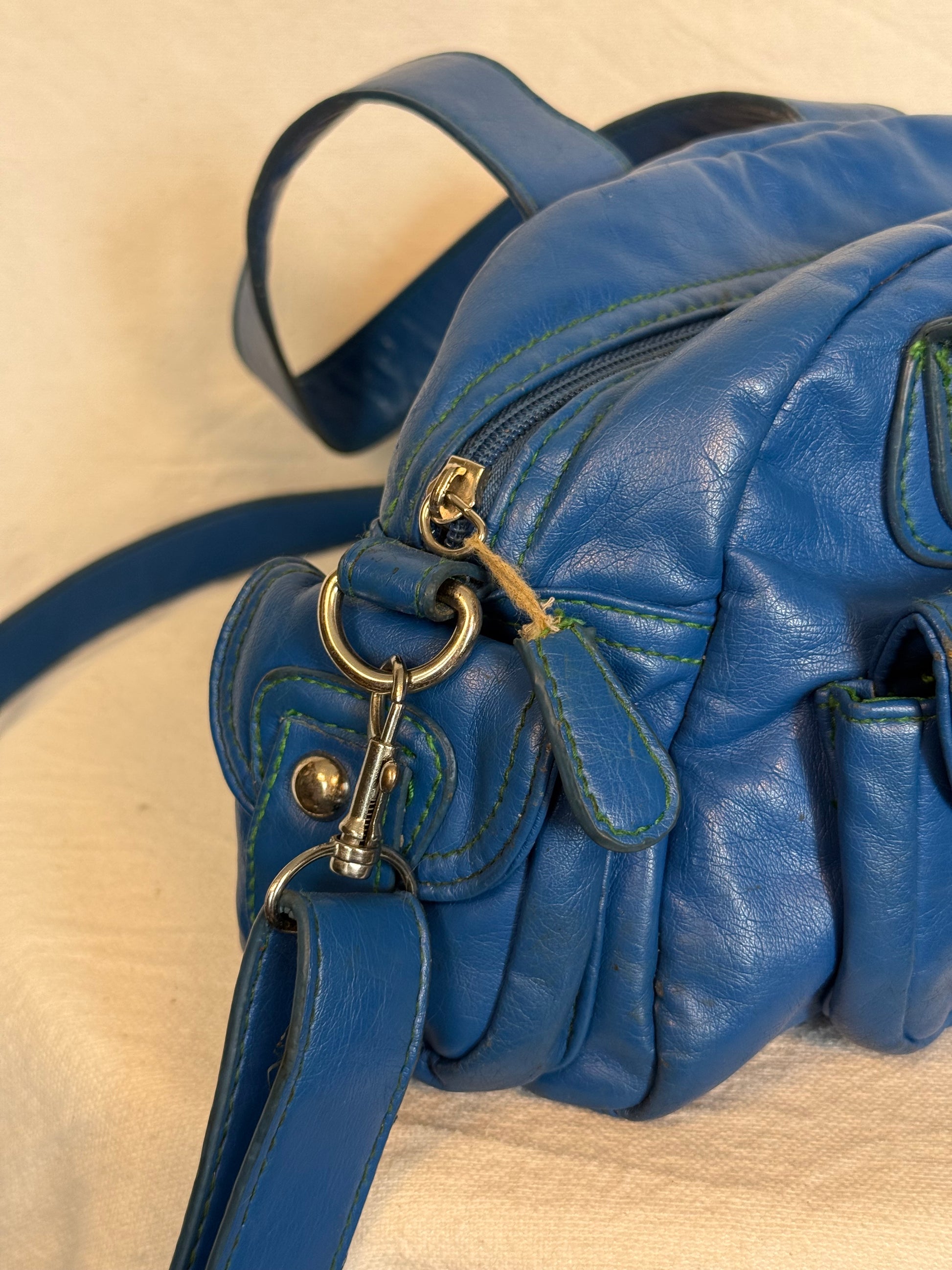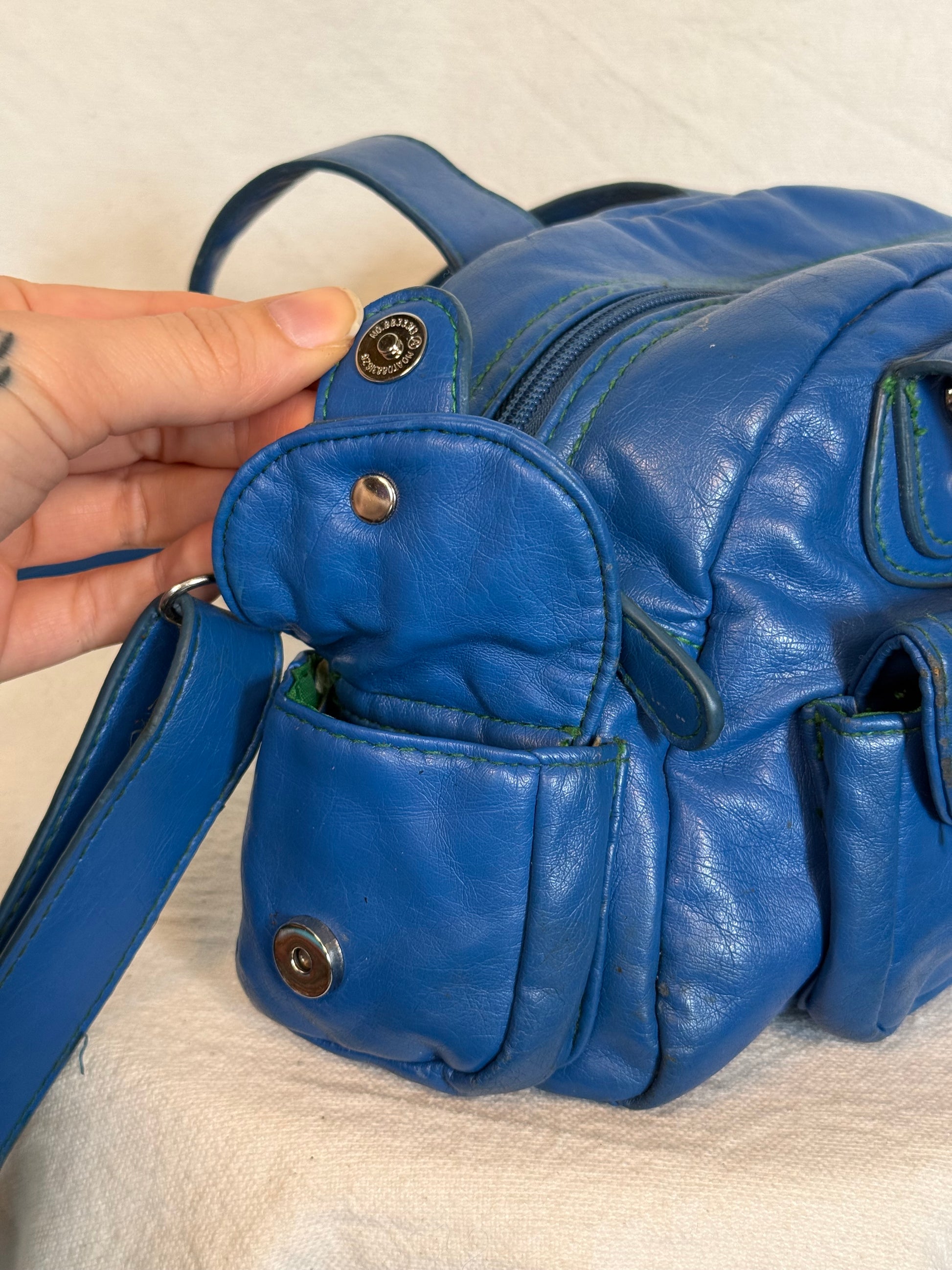 • Beautiful vibrant blue leather with green stitchingÂ