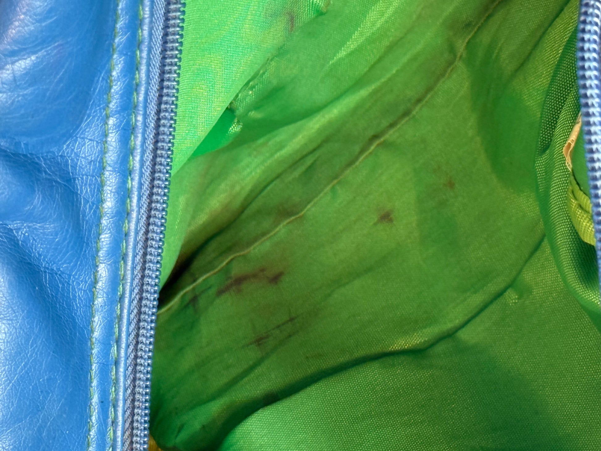 • Zipper tag is coming off and has interior stains. Inner zipper doesn't closeÂ
