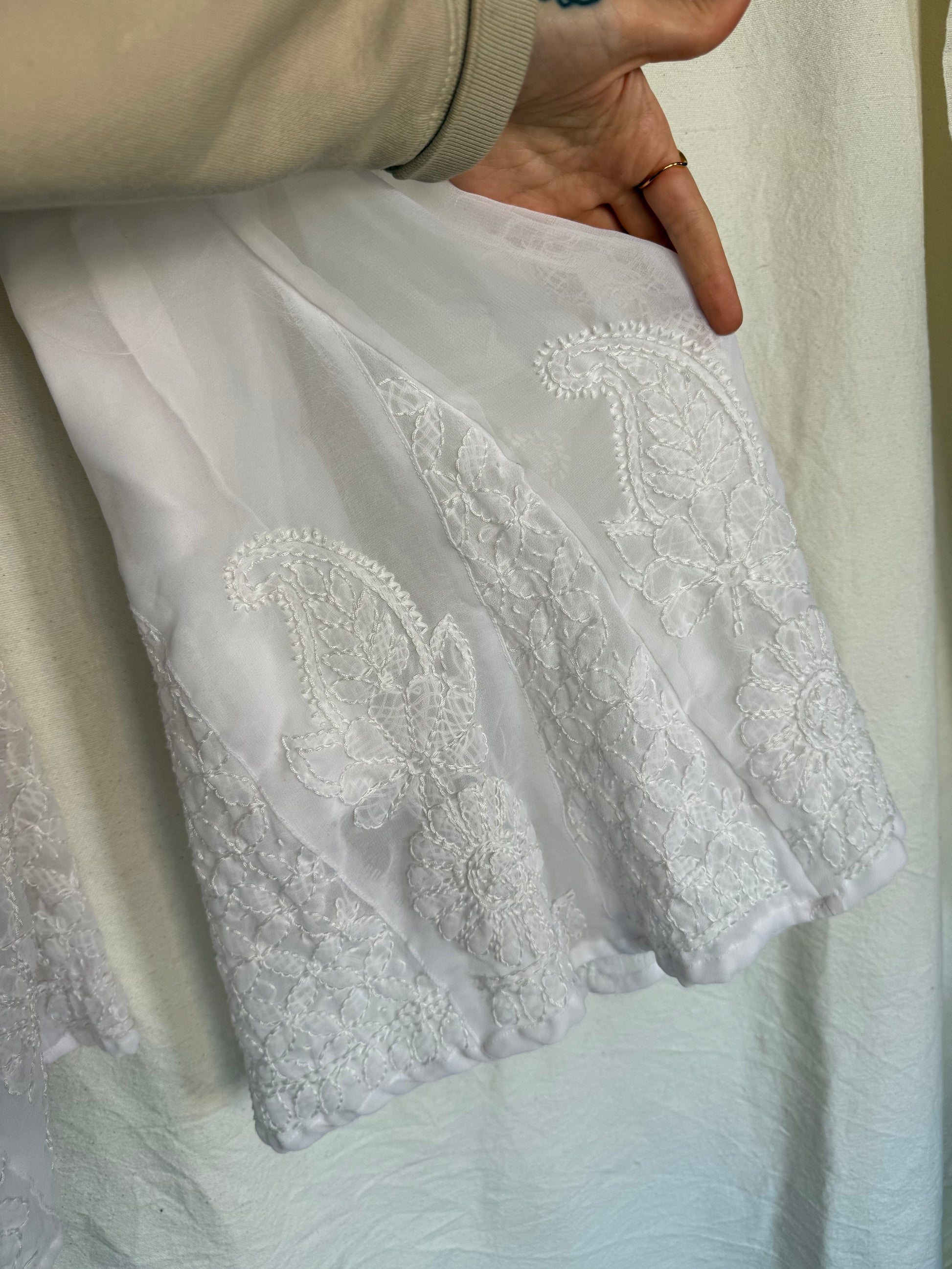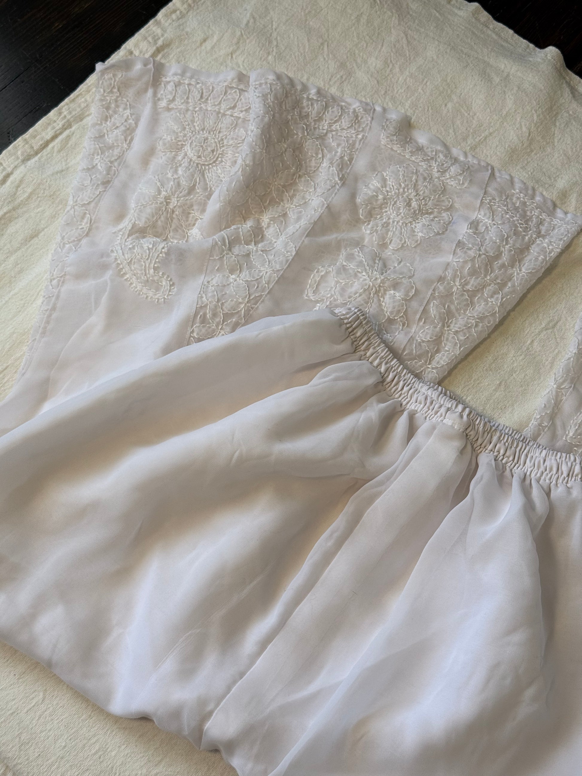 ⢠Beautiful detailed white pants, perfect for an unconventional bride
